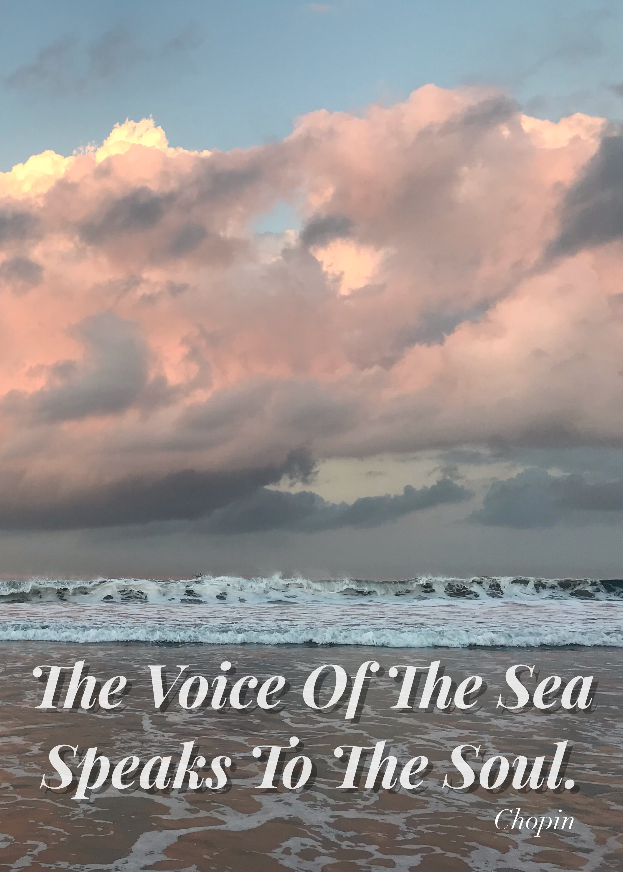 As my feet dipped into the water, the waves began to drift inland and then back again. In that moment I realized -the ocean breathes. It’s a living, breathing, connected being. That experience took my breath away. The ocean is powerful, yet graceful. Today, the surf was rough - I suppose that made the sea even more majestic in the moment.