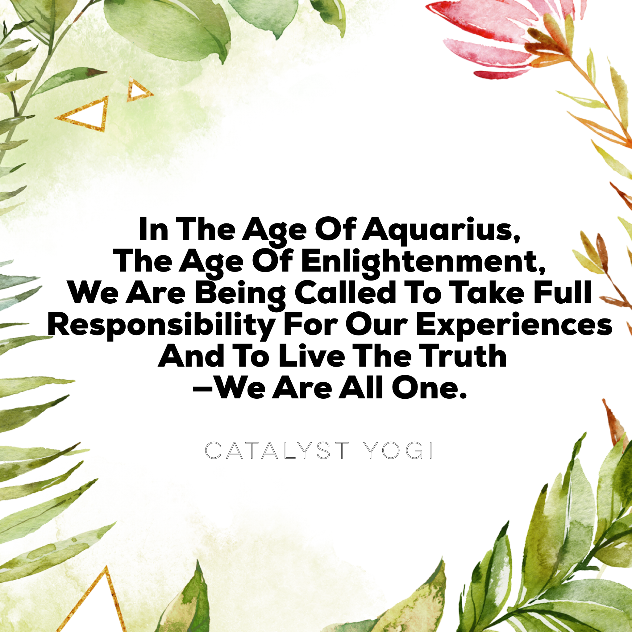 In the Age of Aquarius, the age of enlightenment, we are being called to take full responsibility for our experiences and to live the Truth—we are ALL ONE.” - Catalyst Yogi