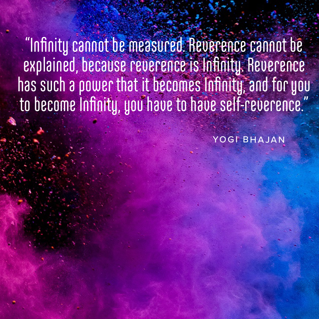 “Infinity cannot be measured. Reverence cannot be explained, because reverence is Infinity. Reverence has such a power that it becomes Infinity, and for you to become Infinity, you have to have self-reverence.” Yogi Bhajan