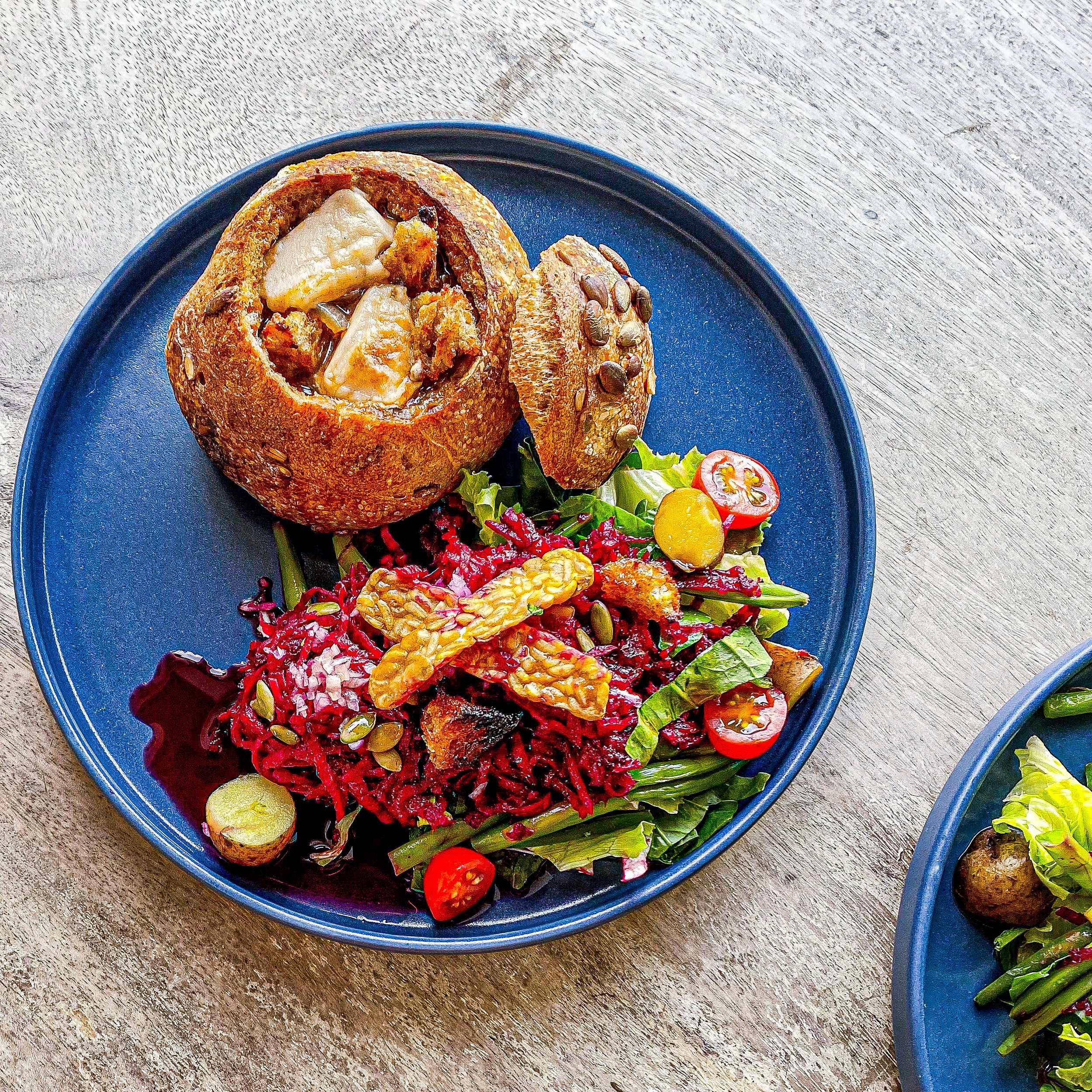 Rainy season calls for cozy warming soups. This plant based French Onion Soup, served in a bread bowl is sure to warm your soul.